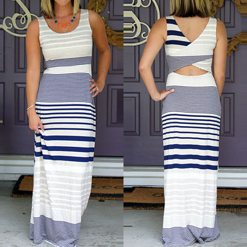 The stripe elements are always fashionable and never will out of date. The elegant dress is outfitted with striped