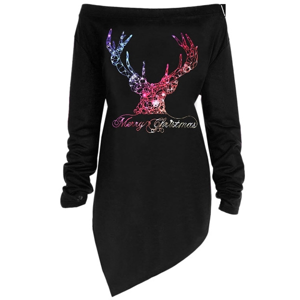The elk printed pattern design makes it look cute and playful,while the boat neck and irregular hem