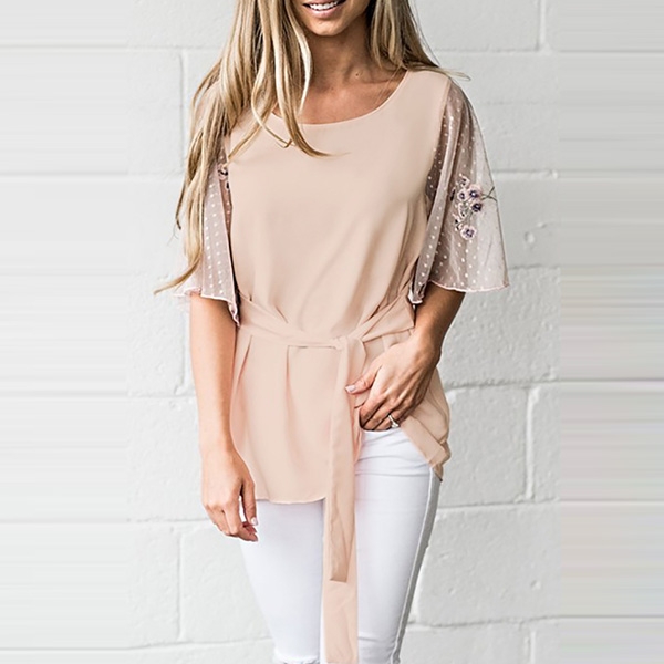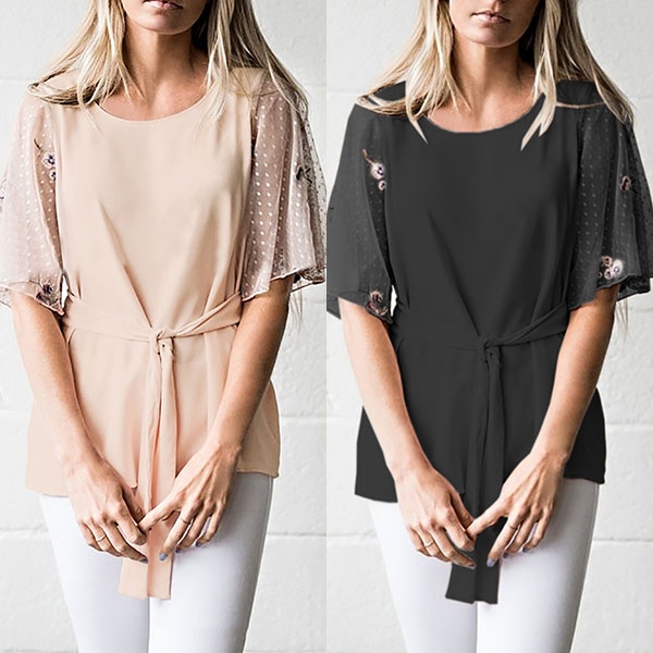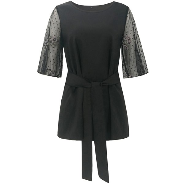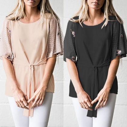 Only need one glance,you can be attracted by this beautiful top. The gauze trumpet sleeve with