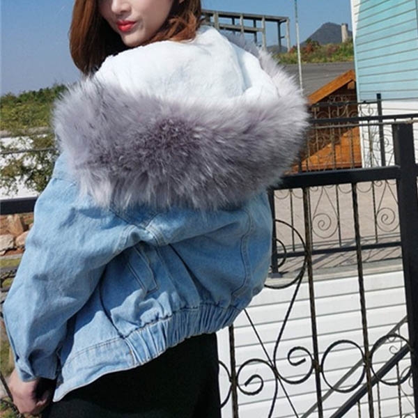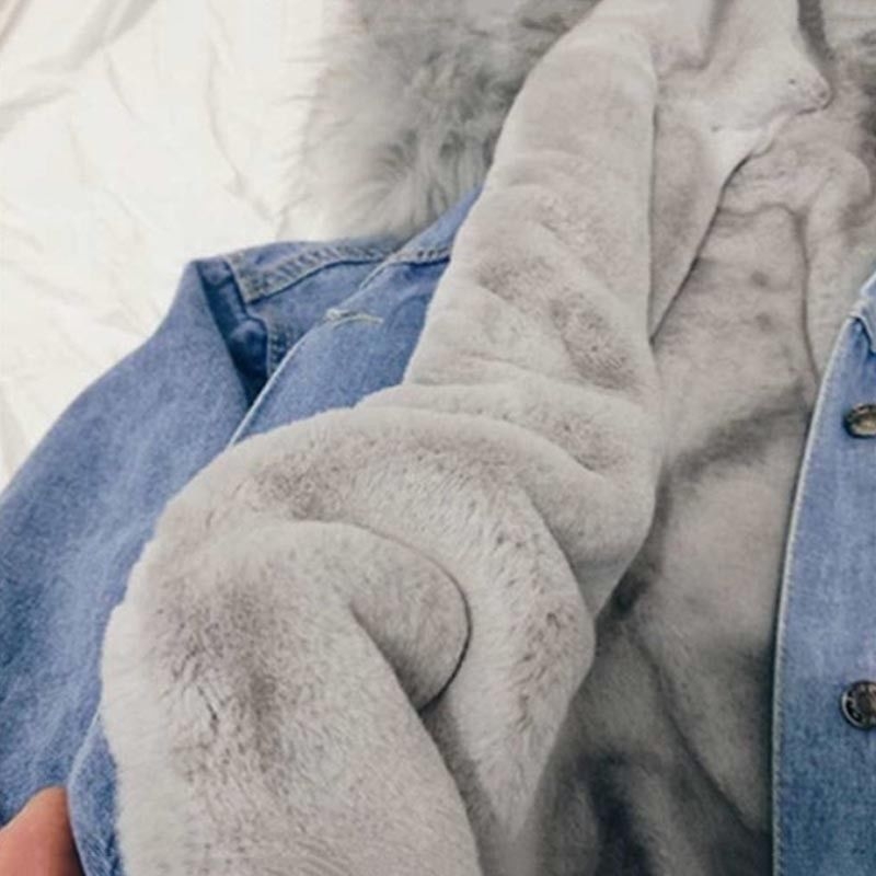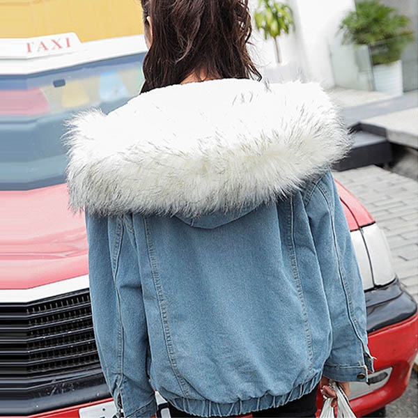 It is a wise choice to invite this denim coat to your wardrobe when the days get cold. The faux fur spliced hooded silhouette and plush lining design not only can ensure your warmth,but also can enhance its charm.You can stay warm as well as maintain your style in this coat.