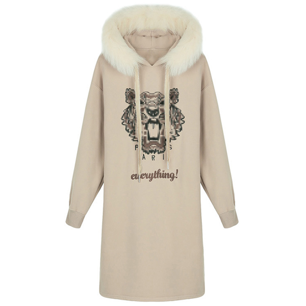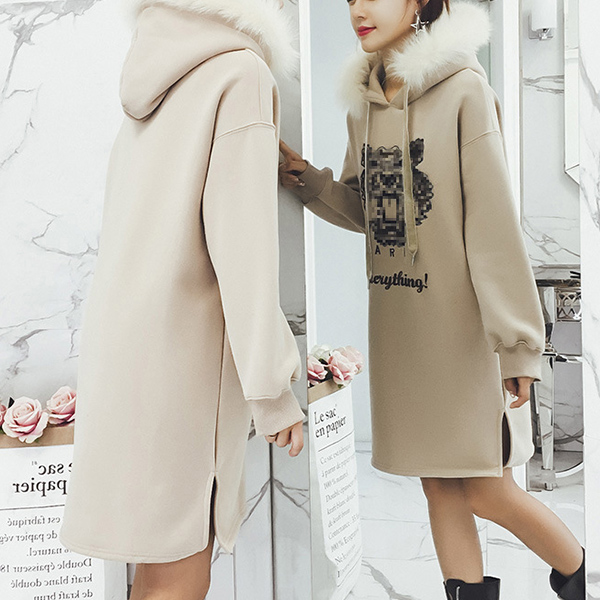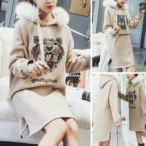 long sleeve,faux fur spliced silhouette and slit hem,this wonderful piece is sure to give you a comfortable day with