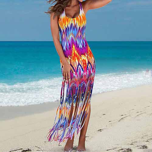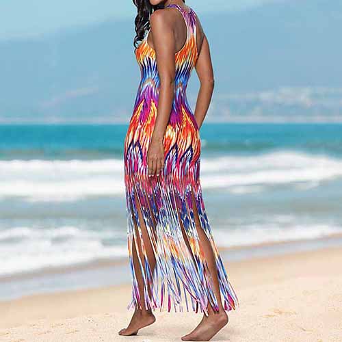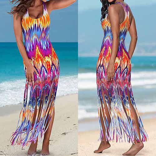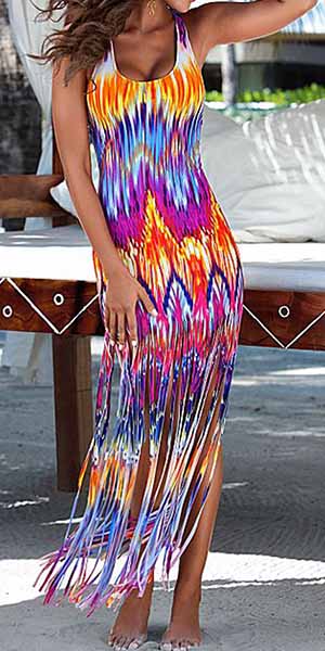 and tassel hem makes this maxi dress look so chic and eye-catching. This dress is perfect for