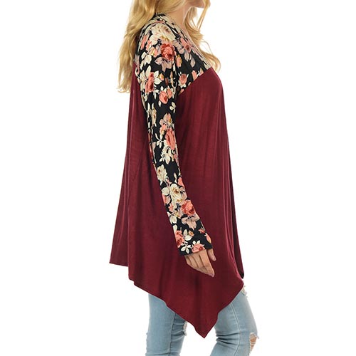 autumn. Featuring chic floral printed, long sleeve and irregular hemline design, this