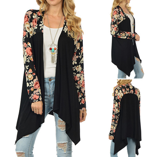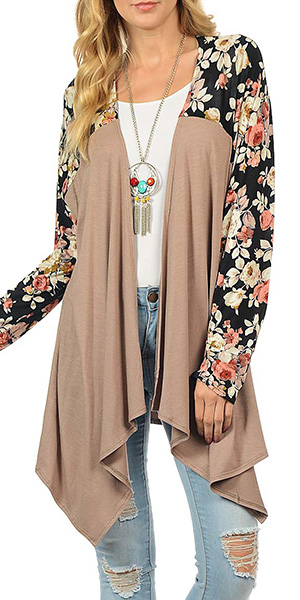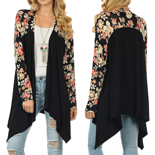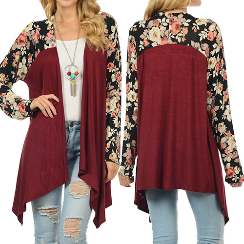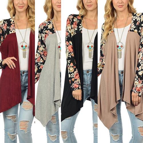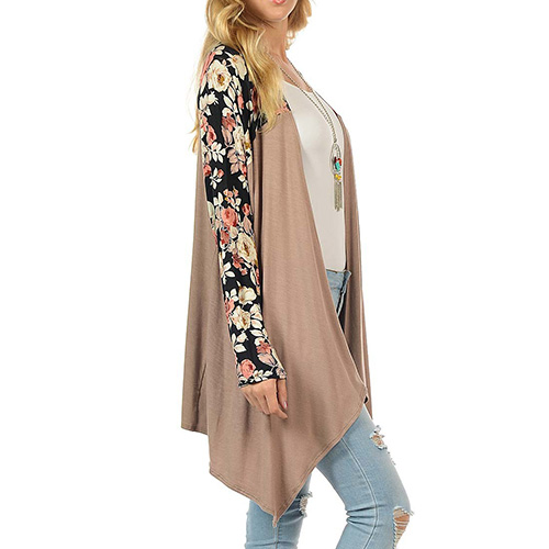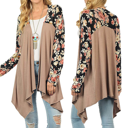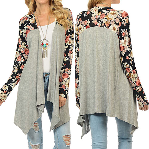 into your autumn. This cardigan is designed with floral printed spliced, long sleeve and open-front, which