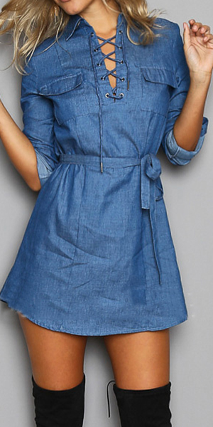 your figure look more charming. Keep it casual and vibrant on your off duty days with this fashion denim dress.