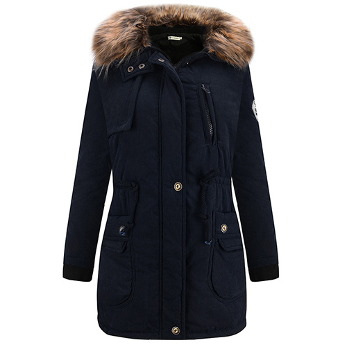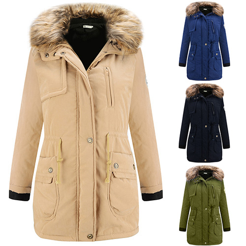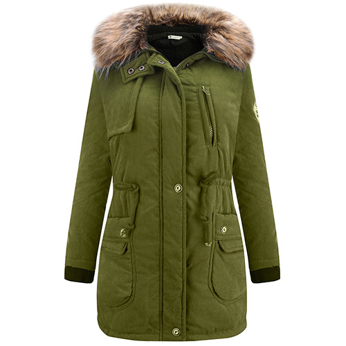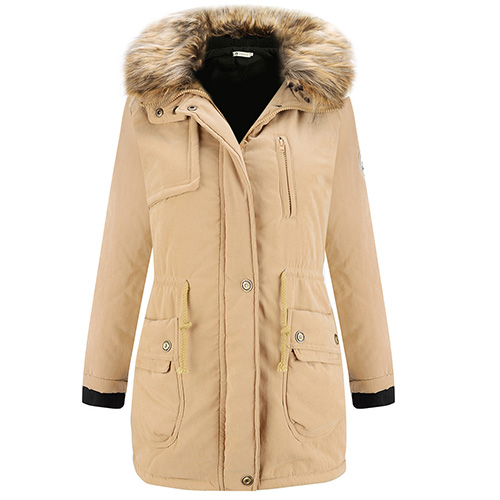 fastening design, better keeping you warm and comfy. Artificial fur collar construction, accompanied with