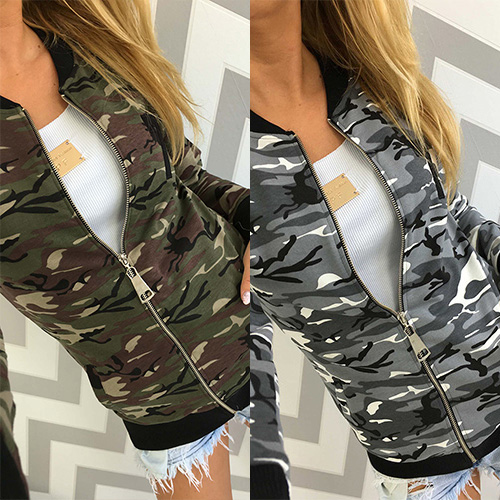fashion style to your look. Front zipper and long sleeve design, this camo jacket absolutely
