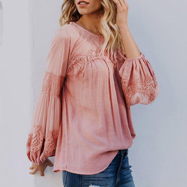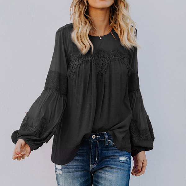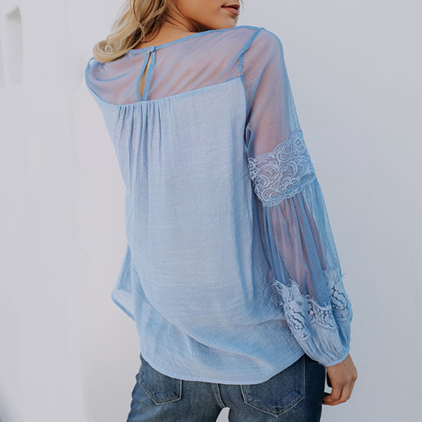 Solid color style,the gauze spliced and lantern sleeve design are the highlights,while the soft fabric and