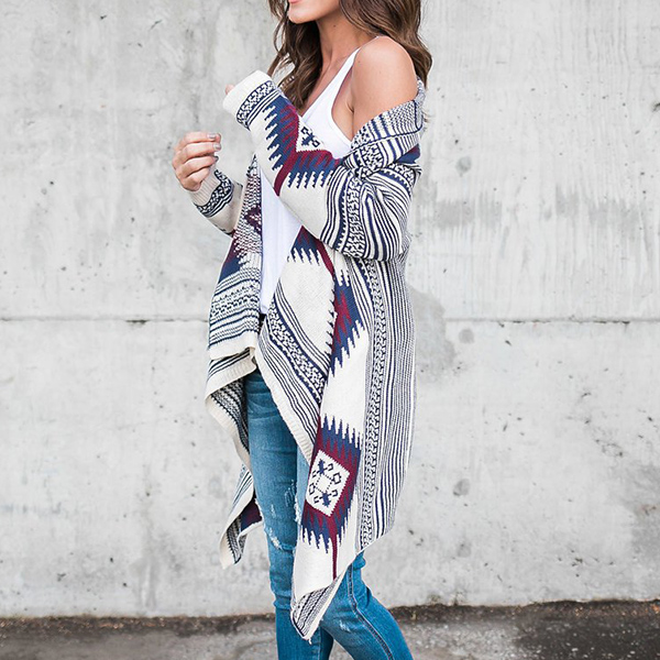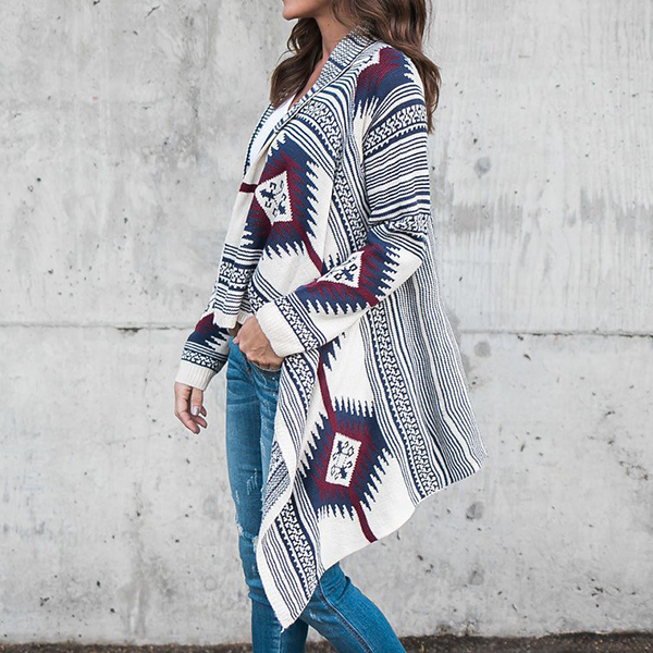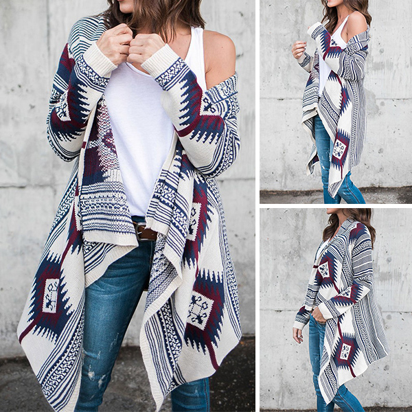 round neck and a loose silhouette,cozy yet stylish. Moreover,the geometric pattern design will give you