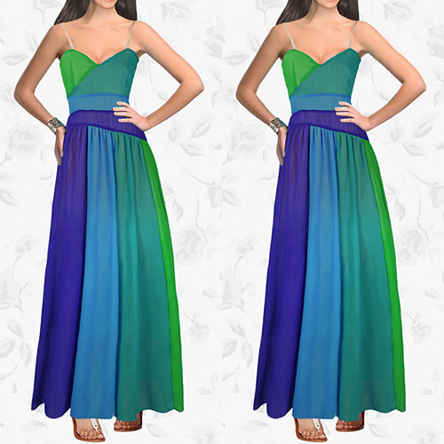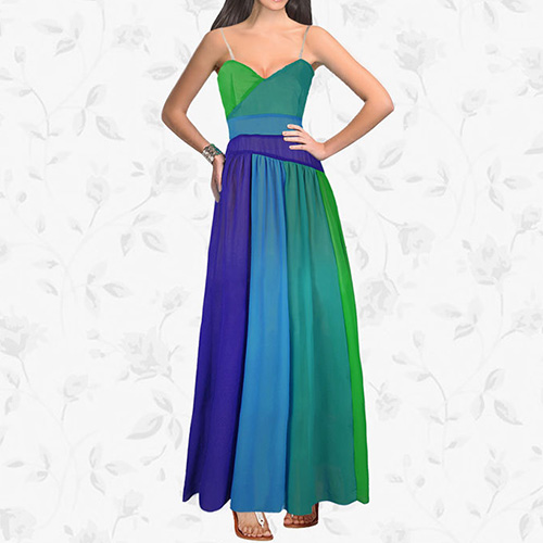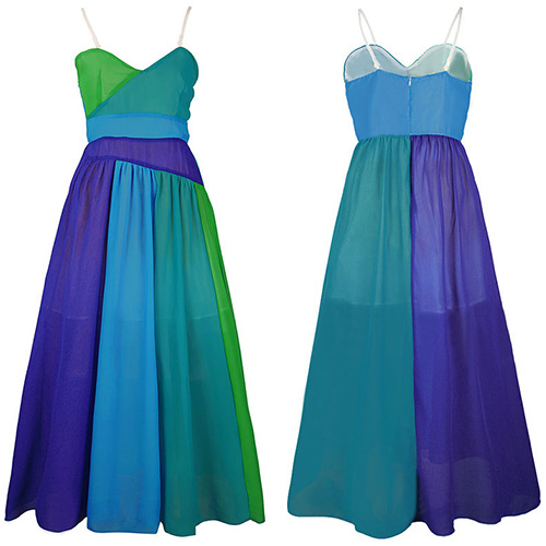 dress is decorated with gradient spliced design and sleeveless pleated patterns, which can