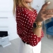 For your workdays,this shirt will help you finish a stylish and charming daily look. The dots printed design