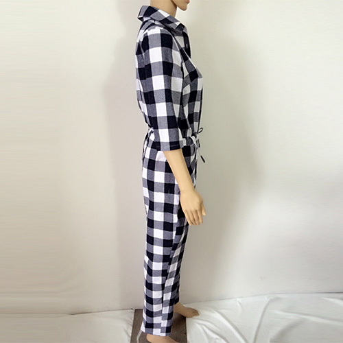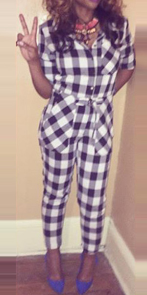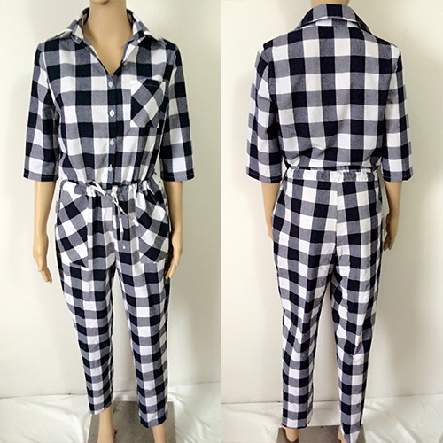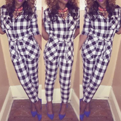 Except for plaid dress,your wardrobe should also have a classic plaid jumpsuit,and this piece is