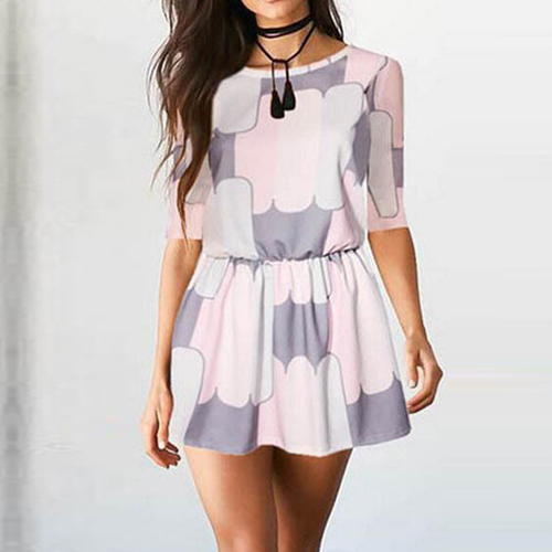 Flaunt your effortless style with this printed dress. Designed with chic printed pattern,half sleeve,round neck and