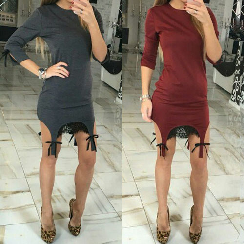 half sleeve,round neck,lace spliced irregular hem and a fit silhouette,this dress can keep you