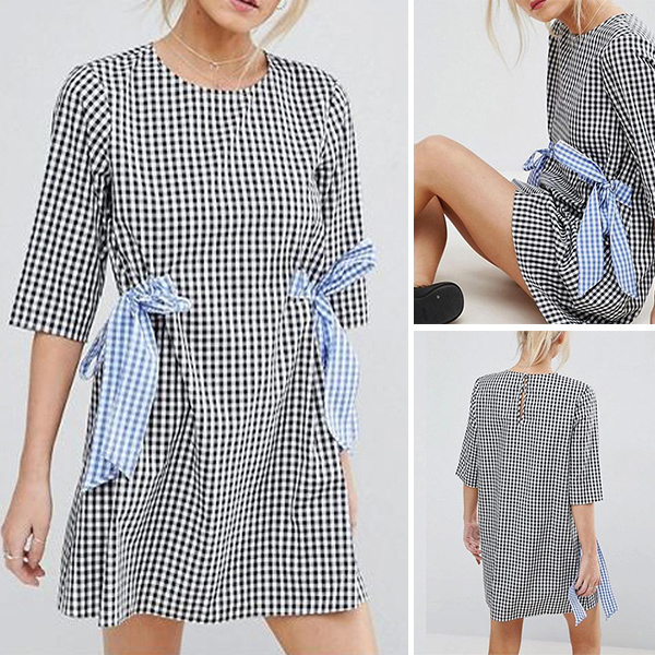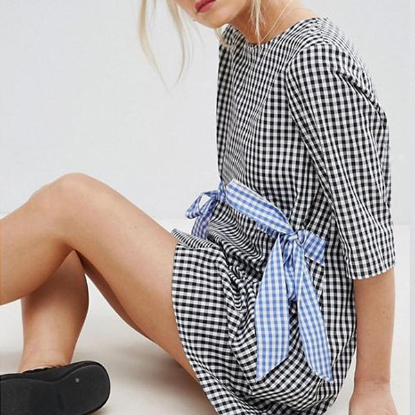 No matter for weekdays or causal weekends, here's a dress you know you can count on. Plaid style,designed with half sleeve,
