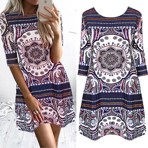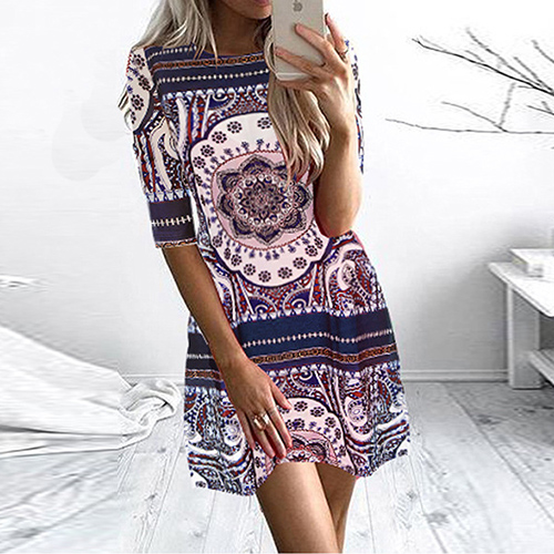 Portray a laid-back and cozy weekend style with this dress. Features chic and eye-catching printed pattern,with