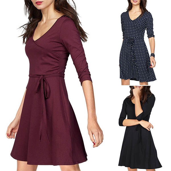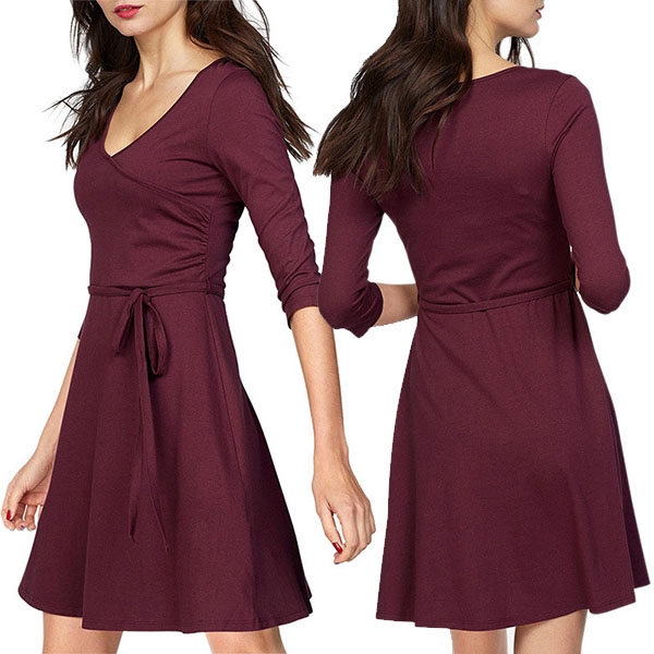 So we suggest you this delicate dress. It is finished with half sleeve and v-neck design,the thin waist strap