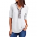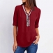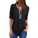 Solid color style,finished with half sleeve,v-neck and sequin spliced details,chic yet stylish.