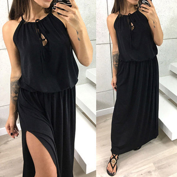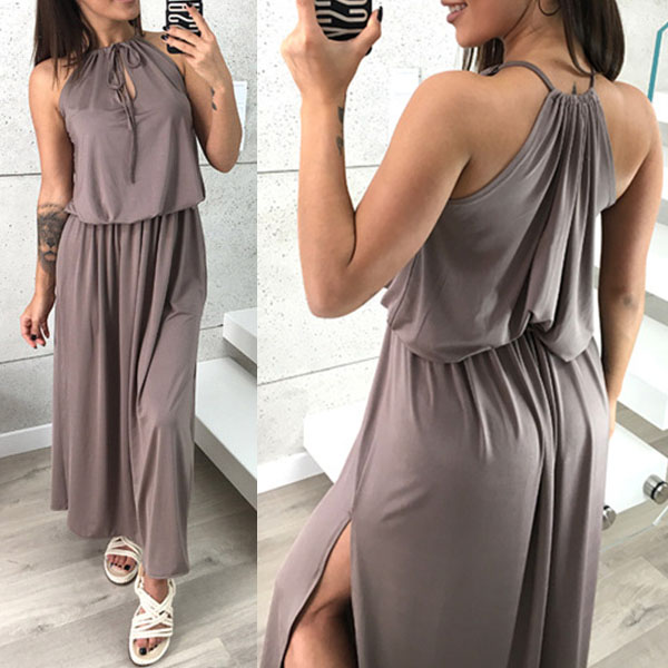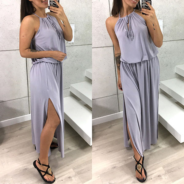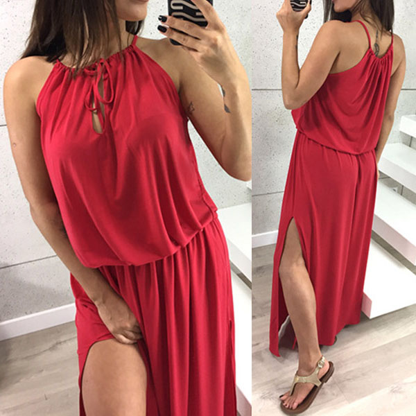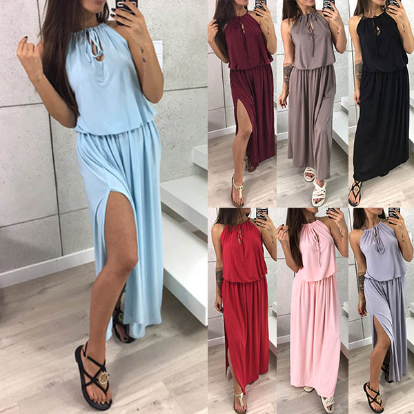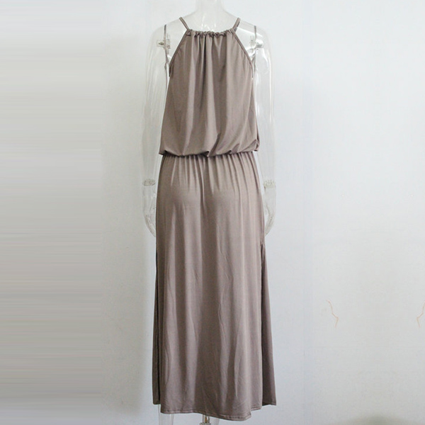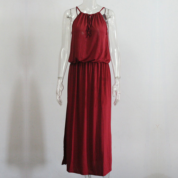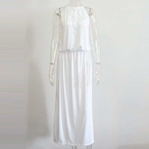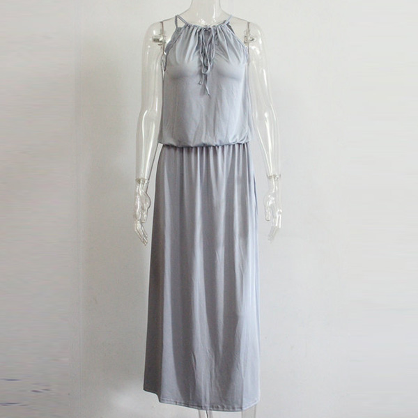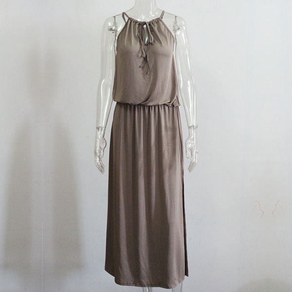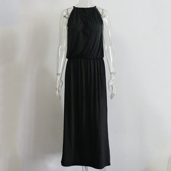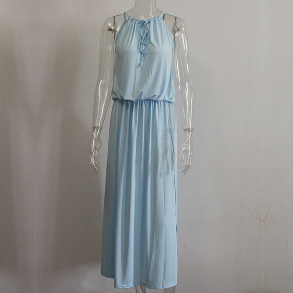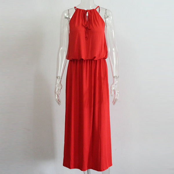 This dress will give you a new and charming look.Elastic neck, solid color and sleeveless design,