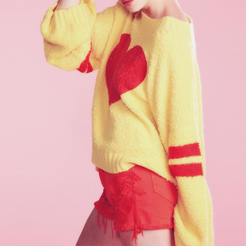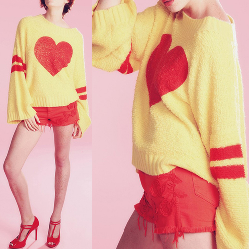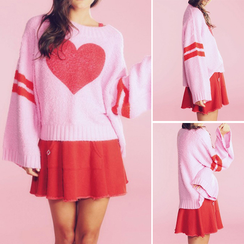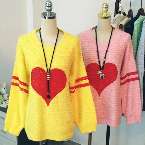 This sweater features heart pattern,sweet and stylish. Outfitted with long sleeve,