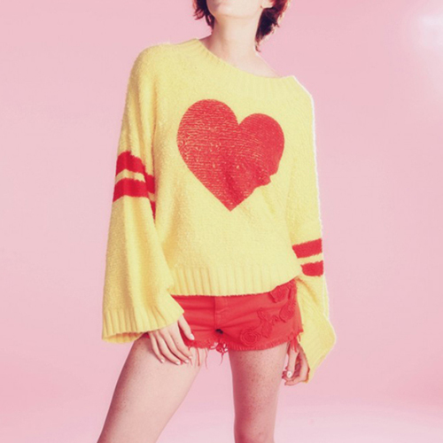 Fashion Heart Pattern Long Sleeve Round Neck Knit Sweater