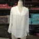 Cast this minimalist aesthetic into your wardrobe. It features high-low hem, V neckline, long sleeves and solid color.