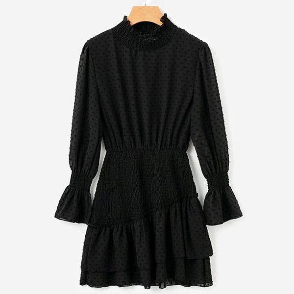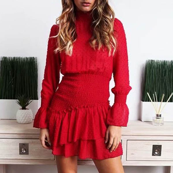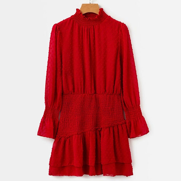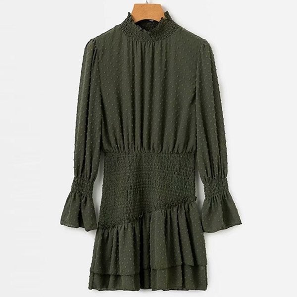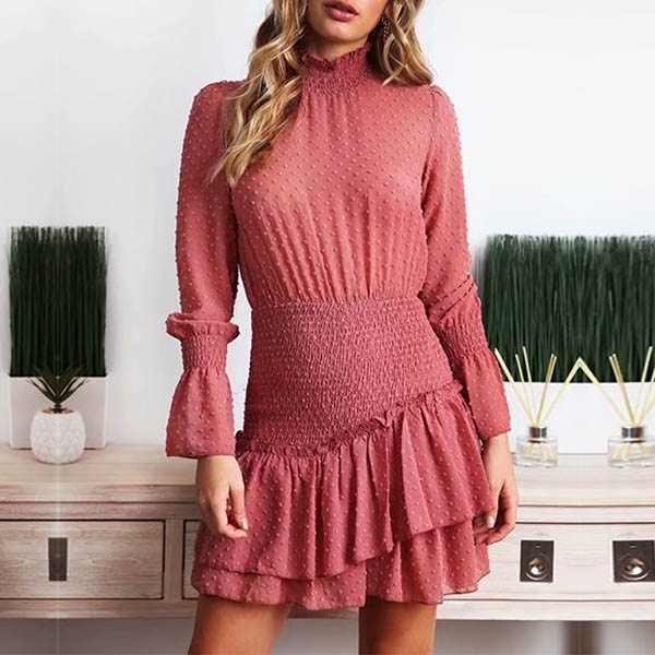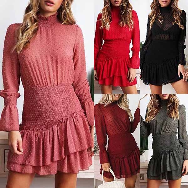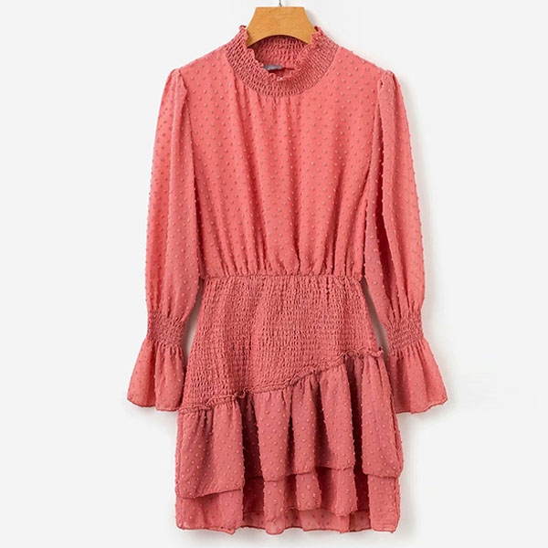 cast in elastic spliced design at the waist and sleeve to showcase your slender figure, add to double layer ruffled hem