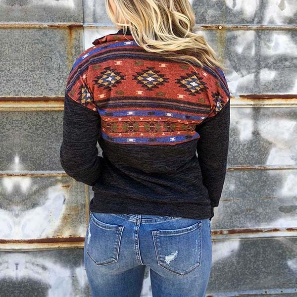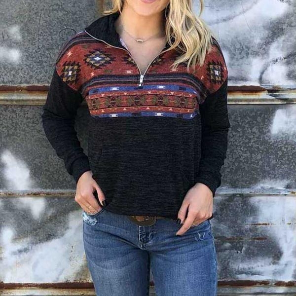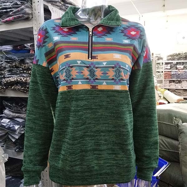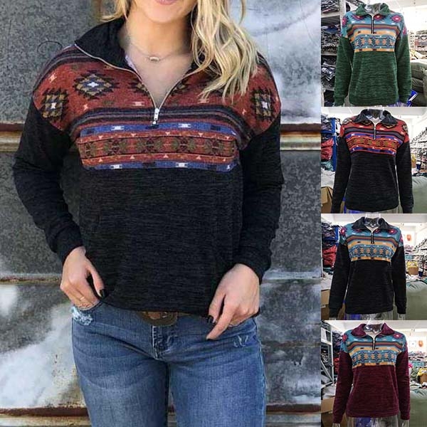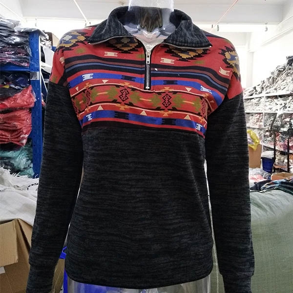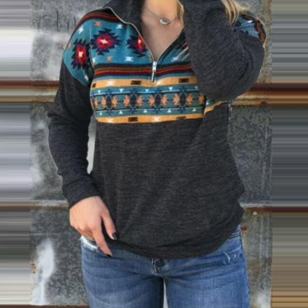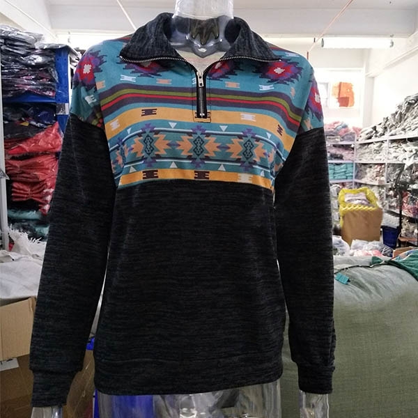 spliced design, front partial zipper closure, high neckline, long sleeves, this piece will bring the warm