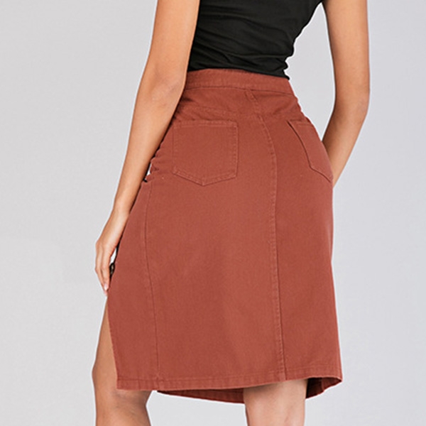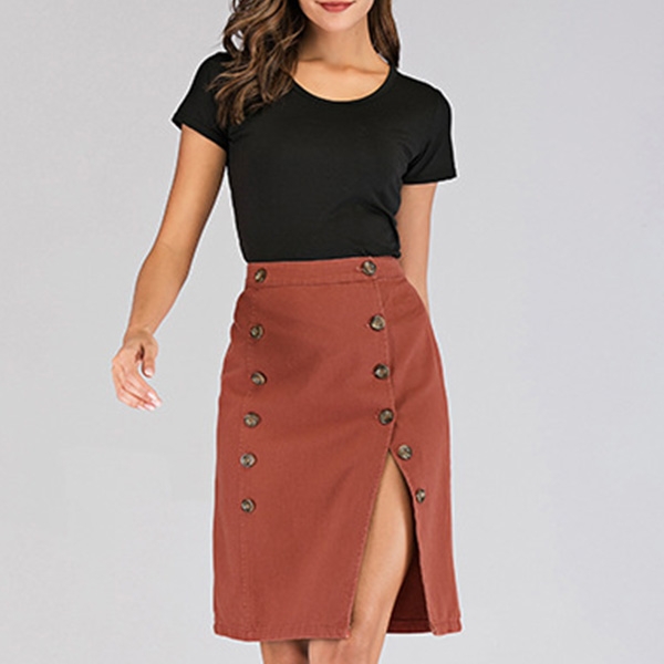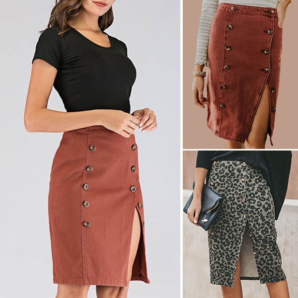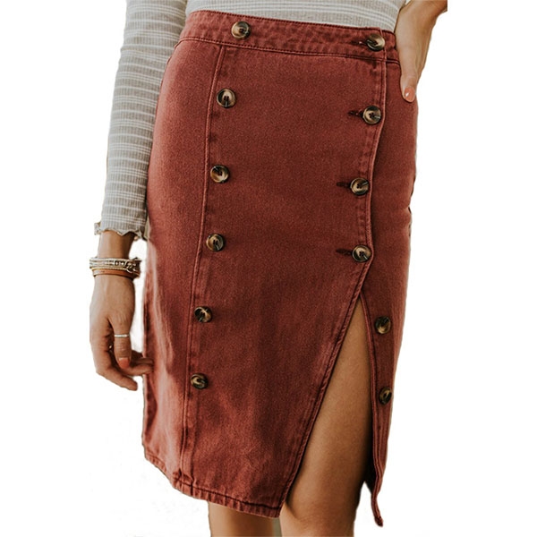 You can easily boost your fashion style with this skirt. It comes with a solid color,the double-breasted and slit