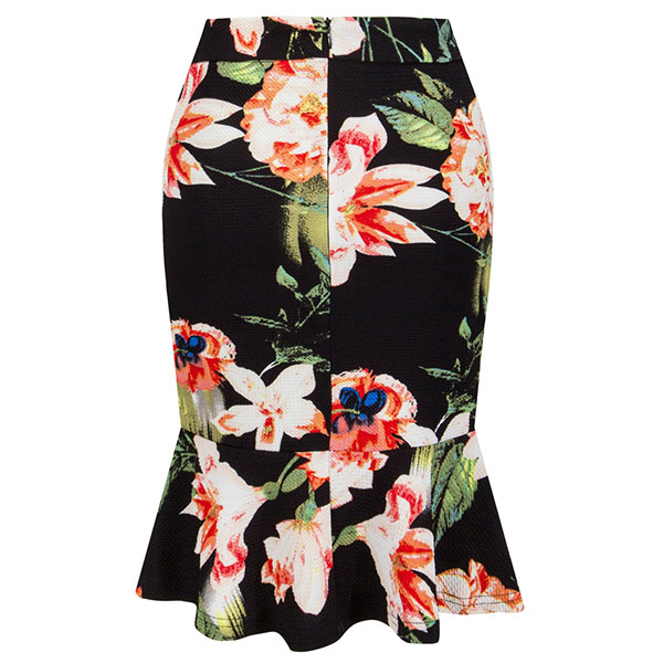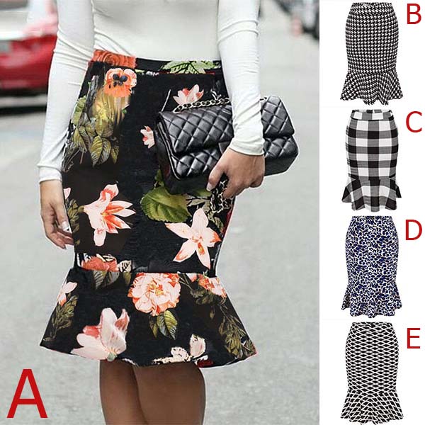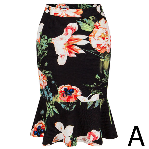 This printed skirt is a good way to enhance your feminine appeal. Finished with high waist and fishtail hem,