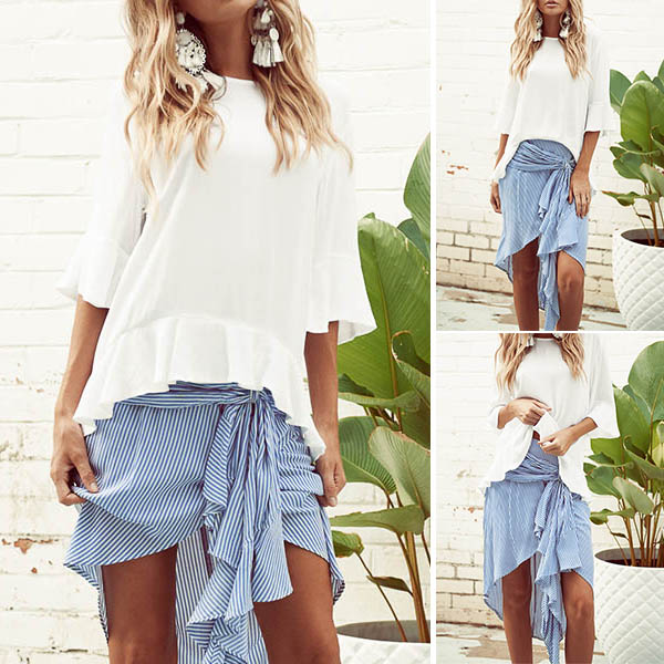 while the irregular hem and bowknot lace-up design at front side make this piece more distinctive. It can offer