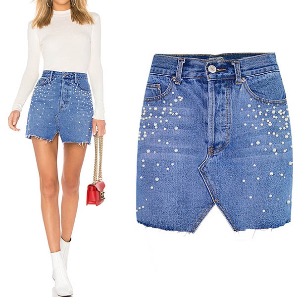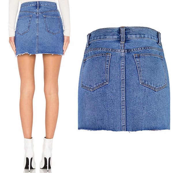 denim skirt. Finished with high waist,an irregular hem and a fit silhouette,this skirt can showcase your