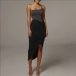 Fashion High Waist Irregular Hem Solid Color Bust Skirt