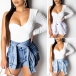 I promise you would be attracted by this denim shorts at your first sight. The sleeve-style lace-up design