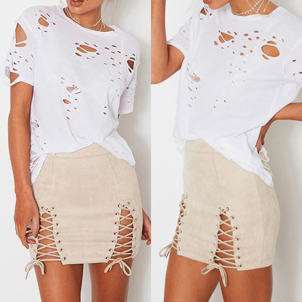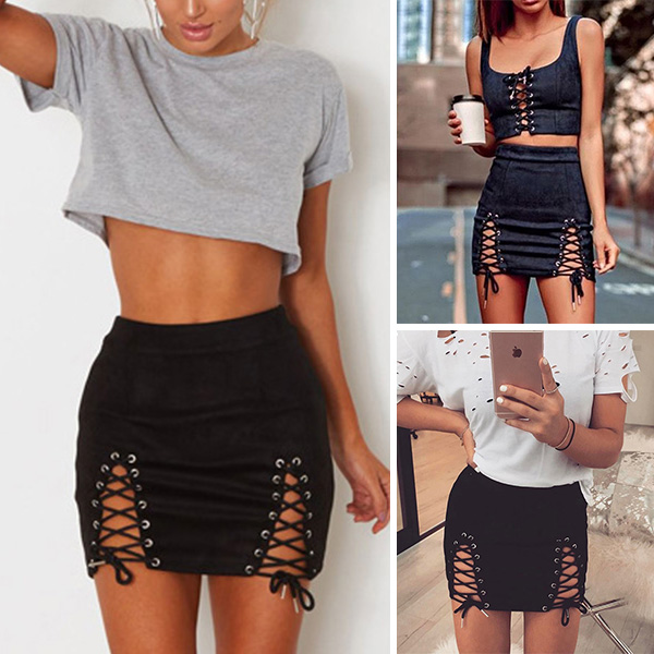 Make your wardrobe more complete by adding this skirt into it. Solid color style,with high waist and lace-up hem design,
