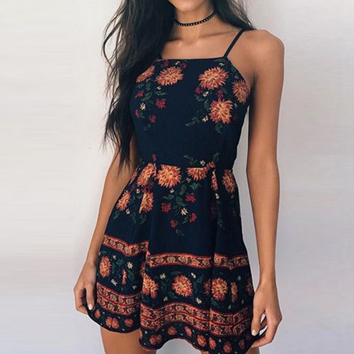 which can lend you a slender figure. nd its vibrant floral print makes this piece more matching with the summer days.
