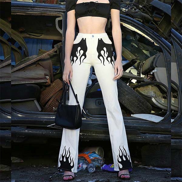 Hey,girls,you can count on this pants to enhance your fashion level. The chic printed pattern design will