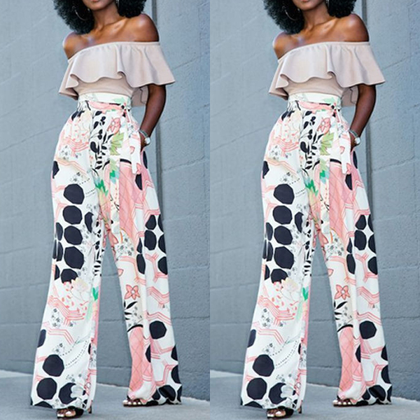 printed pattern,comes with high waist and a wide-leg silhouette,this pants is a good way to demonstrate your slender figure.