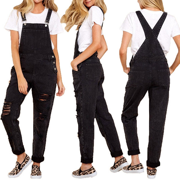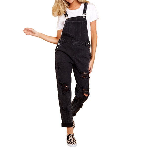 Your wardrobe would be more complete by adding this denim overalls. The ripped details will enhance its charm,