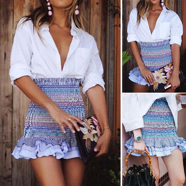 This cozy,stylish and all-match skirt is worth to arouse your attention. Colorful striped design makes