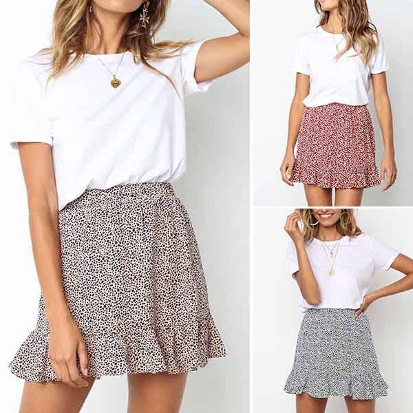 printed details,with high waist and ruffle hem,this skirt can offer you different matching styles.