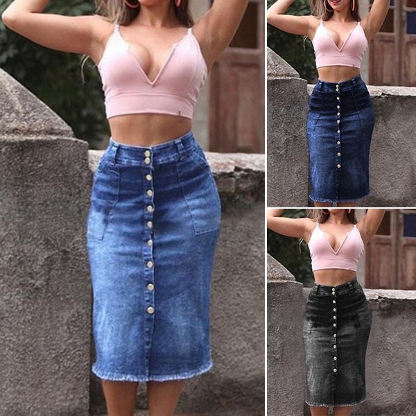 You can easily enhance your daily style with the help of this denim skirt. The high waist an fit silhouette