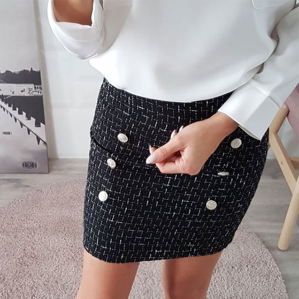 showcase your charming and slender legs. Decorated with double-breasted design will further enhance its charm. Perfect fit for matching
