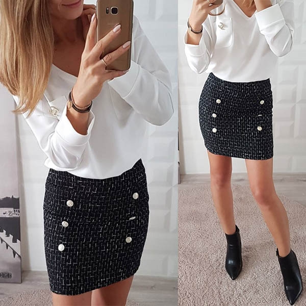 How could you lack of a stylish and all-match skirt in your wardrobe? This one is designed with high waist and a fit silhouette,which can