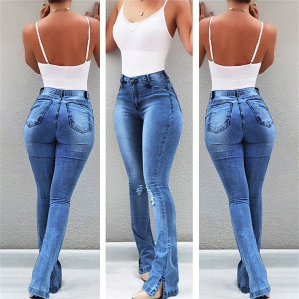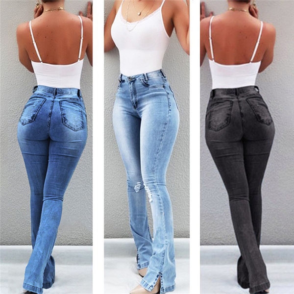 this jeans knows how to portray your slender figure. Moreover,the flared hem and ripped details will make