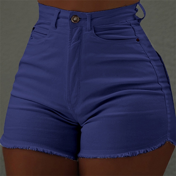 this denim shorts to your wardrobe? Solid color style,the high waist and slim fit design can better highlight