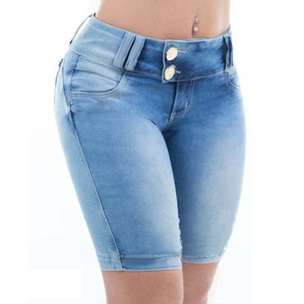 Exuding simple,stylish and all-match taste,this knee-length denim shorts would be a wise investment.