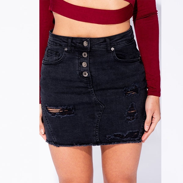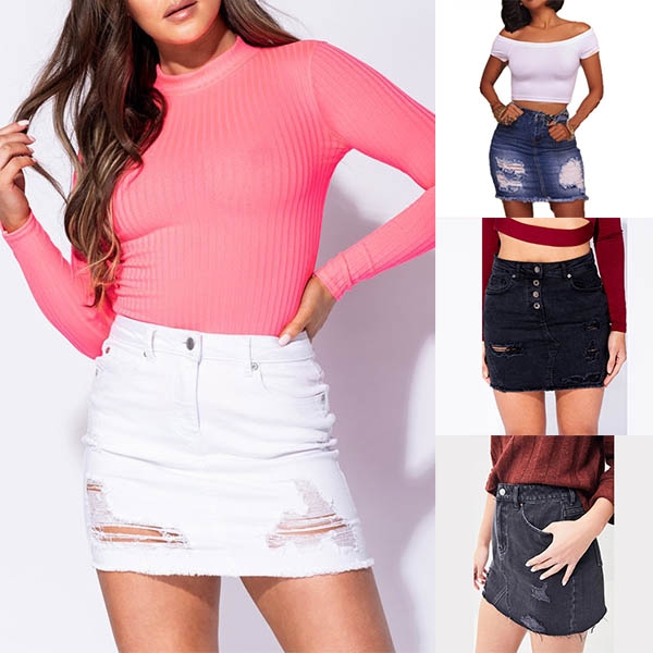 Fashion High Waist Slim Fit Ripped Denim Skirt(It falls small)