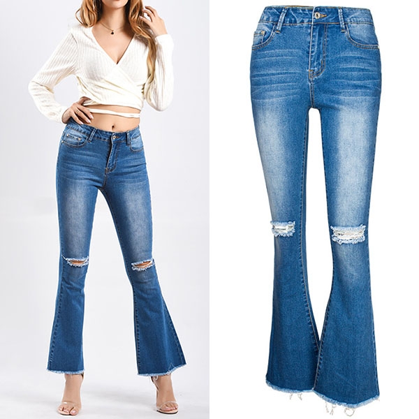 The ripped details and flared hem design can better highlight your feminine appeal,