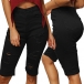 This knee-length denim shorts comes with a solid color,simple yet stylish. Designed with high waist,